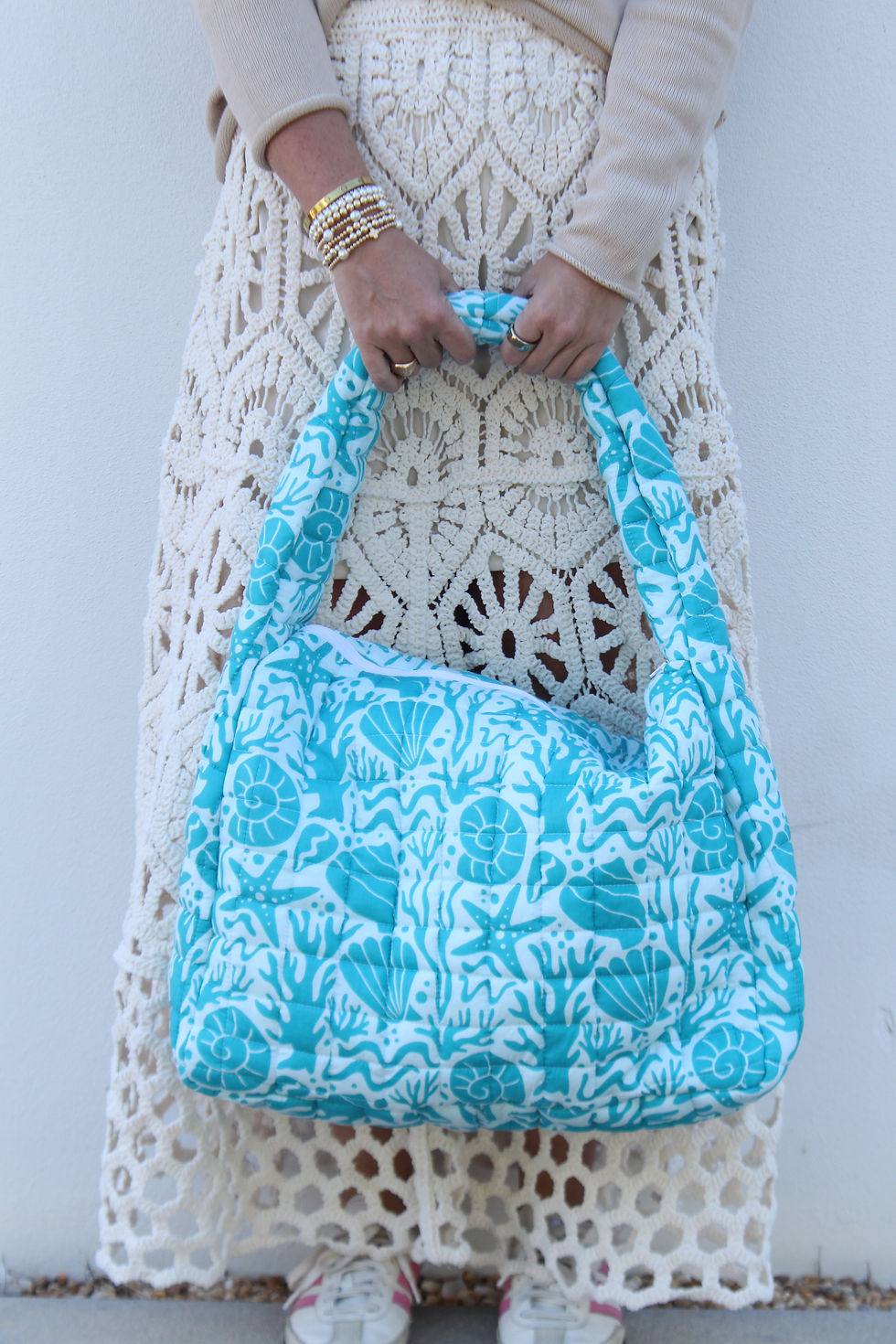 Print Designed by Paige Gemmel.100% Cotton. Zips on the side; has pockets. Cold water wash, hang to dry or dry on low heat. High wasted,runs slim at the waist, reccomend sizing up unless you are small waisted.